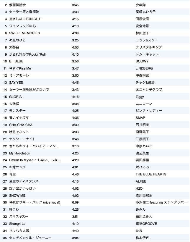 さて、イベント当日に出題された108曲をこちらに貼っておきます。