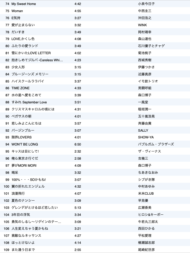 11月9日の選曲108曲