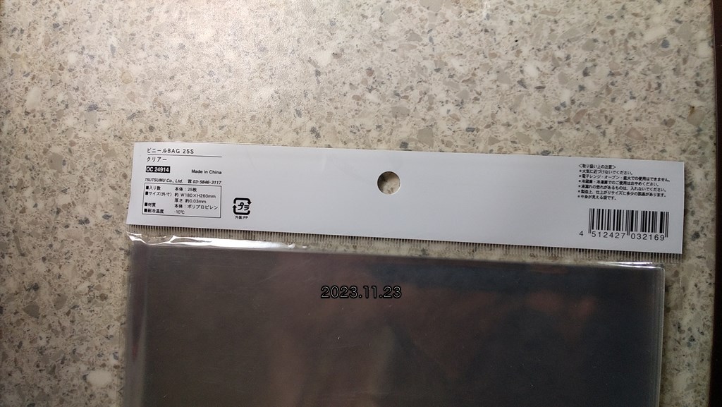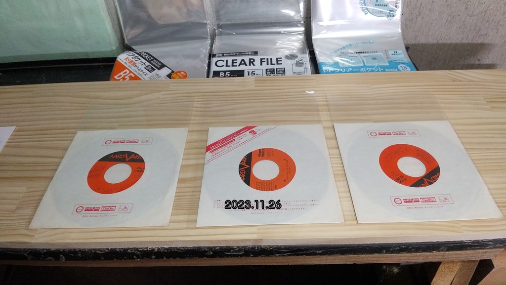 キャンドゥの製品は0.05mmと少し厚みがありますので、しっかりしていて、実際にレコードが入っていた袋と遜色がないように思われます。