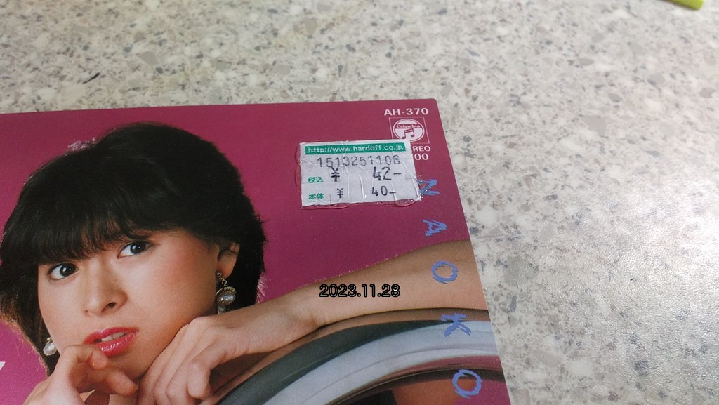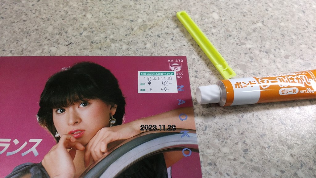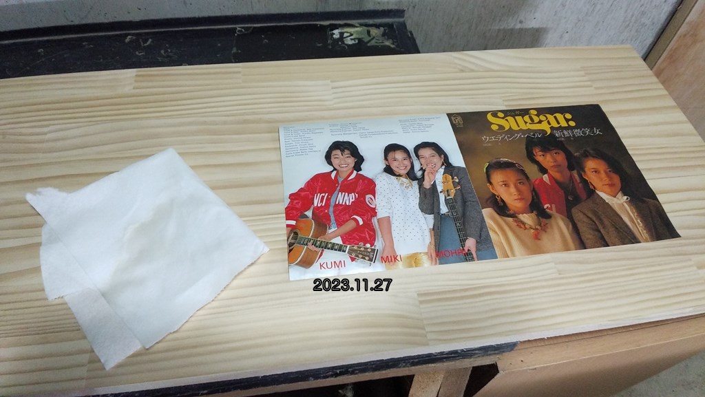 では、実際にレコードを入れてみます。基本的にペラ紙のジャケットの大きさはレコードジャケットに比較して小さいので、レコードが入っている紙ジャケットで比較してみます。