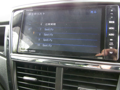 3枚目の右上は定額音楽配信サービスSpotifyを起動しています。アートワーク、曲順も含めほぼ完璧に再生してくれます。(無料版なのでスマートフォン経由の場合シャッフルプレイしかされない)ちなみにナビの「再生中リスト」では次曲表示は「Spotify」と表示され選択がうまく行かないようです。