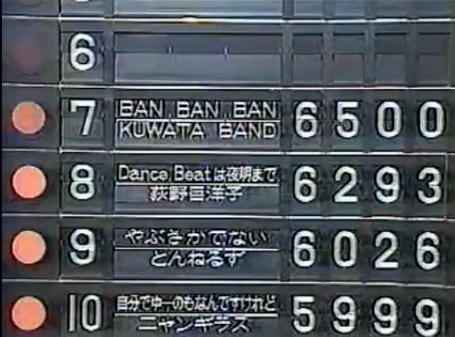 | 25 | チェッ!チェッ!チェッ! | 岩崎良美 | 2266点 | -位 | -位 | -位 | -位 |