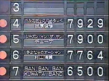 | 20 | ナーバス・ビーナス | 吉川晃司 | 3400点 | -位 | -位 | -位 | -位 |