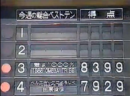 君は1000% 1986 OMEGA TRIBE 8399点 レコード7位・有線3位・ラジオ3位・はがき4位
