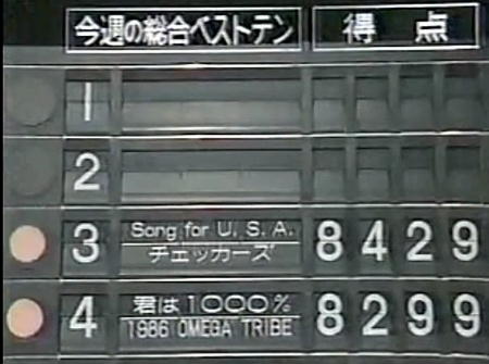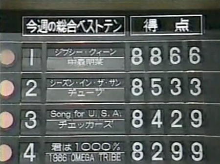 君は1000% 1986 OMEGA TRIBE 8299点 レコード8位・有線5位・ラジオ4位・はがき3位