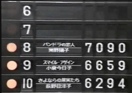 パンドラの恋人 南野陽子 7090点 レコード5位・有線-位・ラジオ4位・はがき-位