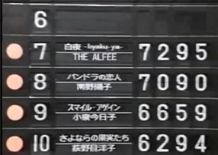 白夜 アルフィー 7295点 レコード10位・有線-位・ラジオ7位・はがき2位