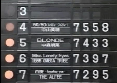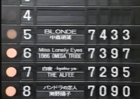 | 11 | Get Wild | TM NETWORK | 6234点 | -位 | 8位 | -位 | 7位 |